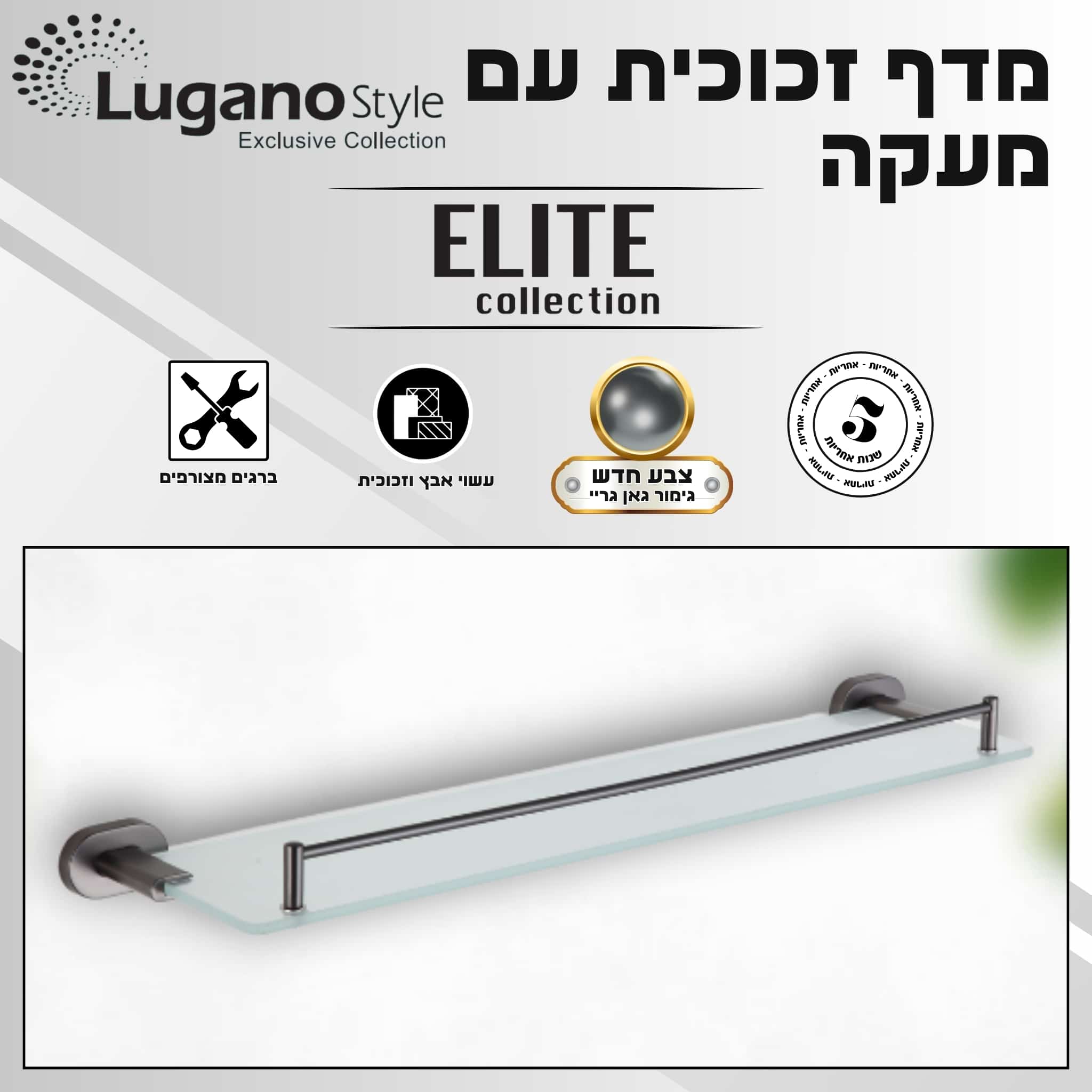 – מדף זכוכית עם מעקה מסדרת אביזרי אמבטיה ELITE.