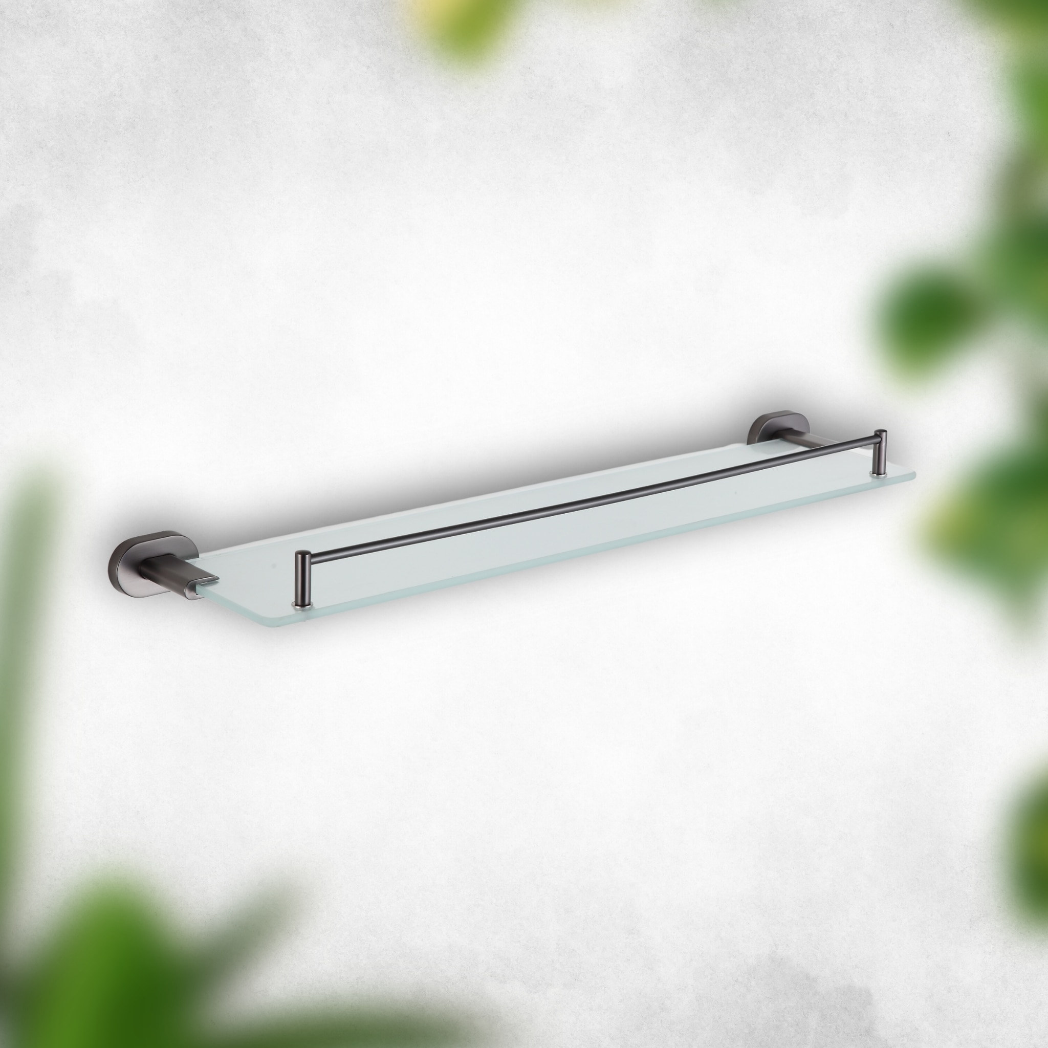 – מדף זכוכית עם מעקה עשוי מחומר אבץ אל-חלד וזכוכית חלבית מחוסמת.