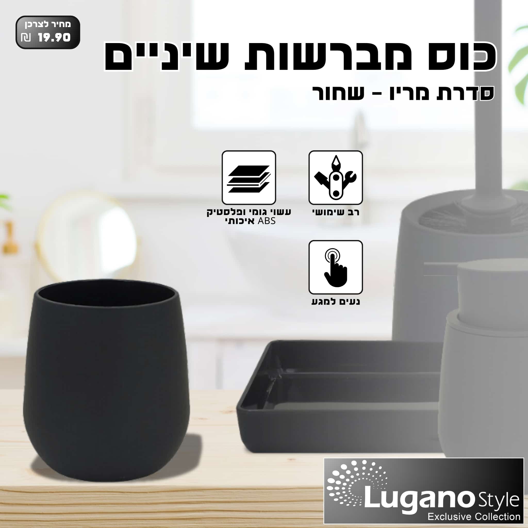 | תיאור: – רב שימושי. – עשוי גומי ופלסטיק ABS איכותי. – נעים למגע.מידות: – קוטר: 6.8 ס"מ. – גובה: 9.2 ס"מ. |