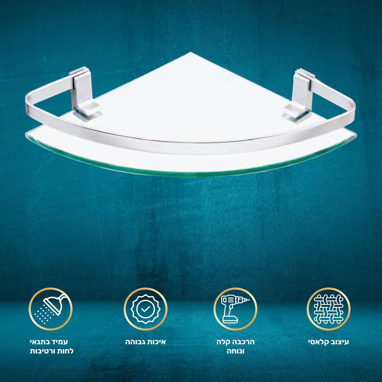 מדף פינתי לשימוש חכם ונוח בשטח המקלחת.