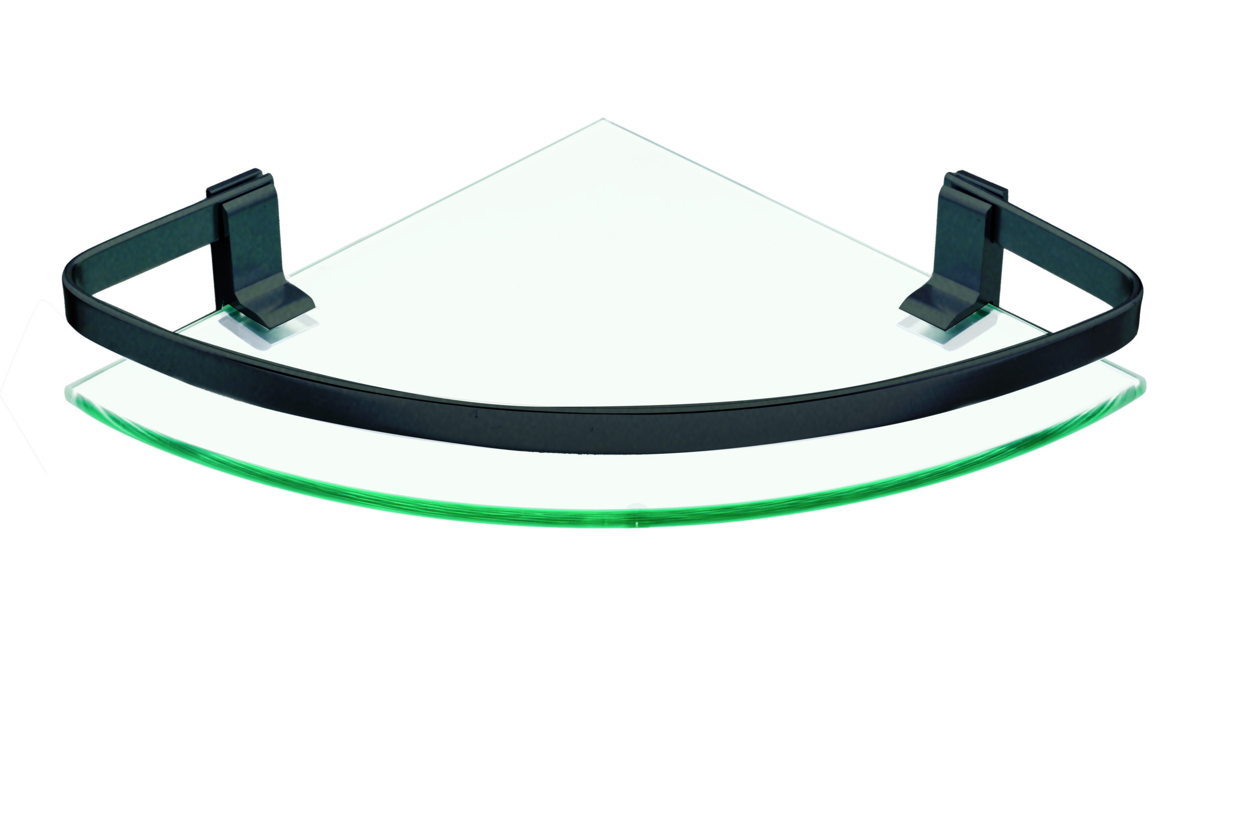 מדף זכוכית פינתי עם מעקה בצבע שחור