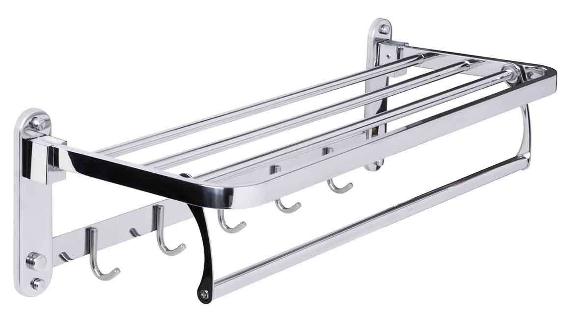 מדף למגבות עם 4 שלבים קולבים לאחסון מירבי