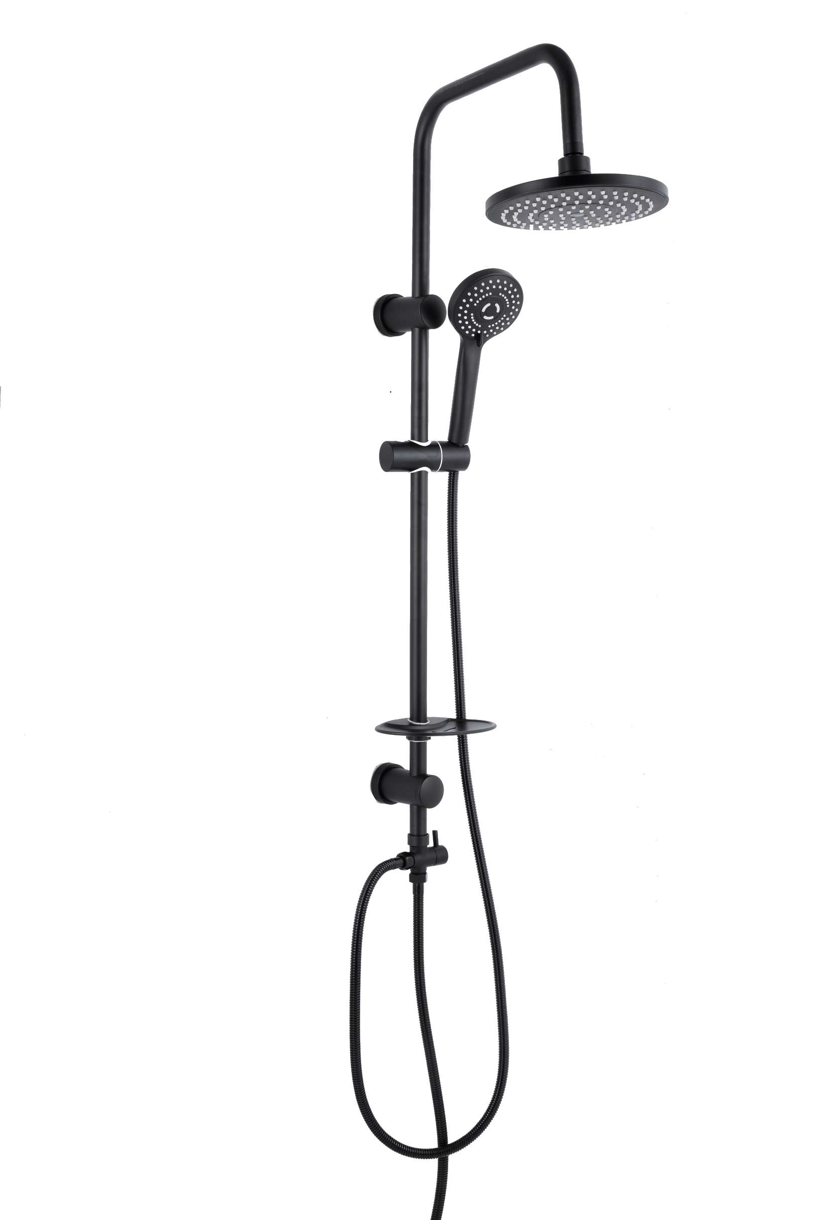 סט מערכת רחצה למקלחת משולבת ראש גשם עם מזלף + צינור, מוט מתכוונן עם בורר מצבים וסבוניה. דגם SUPER MAXIMO BLACK סופר מקסימו צבע שחור