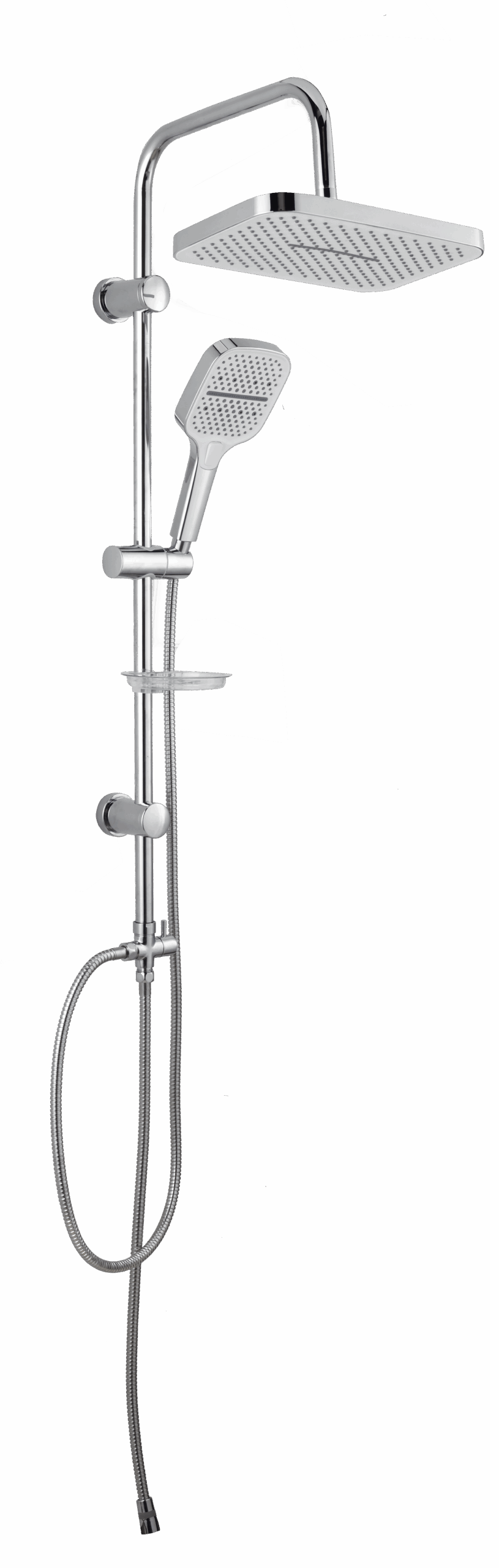 סט מערכת רחצה למקלחת משולבת ראש גשם עם מזלף + צינור, מוט מתכוונן עם בורר מצבים וסבוניה. דגם לוקה
