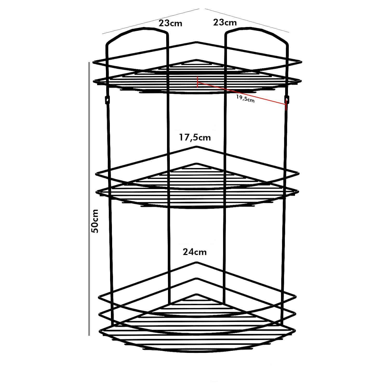 רשת פינתית – 3 קומות לחדר הרחצה והמקלחת ניתן לתליה בפינה שמאלית או ימנית. ציפוי כרום תלת שכבתי. כולל ברגי נירוסטה ודיבלים במארז. מידות: אורך: 50 ס׳׳מ רוחב מפינה: 23 ס׳׳מ