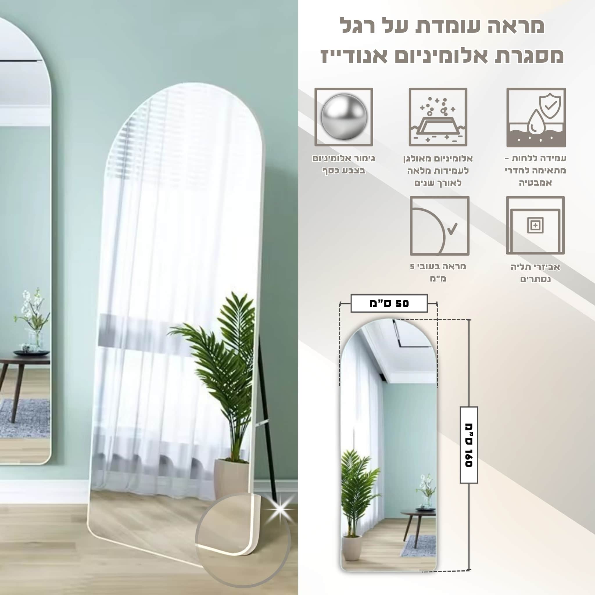 מראת גוף – עומדת על רגל, מסגרת אלומיניום בצבע כסף