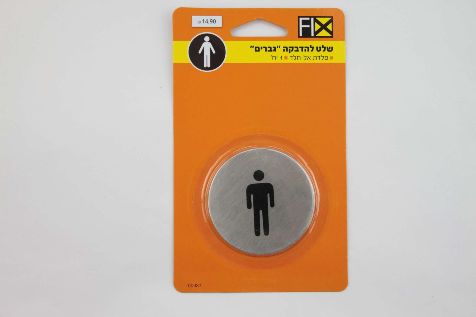 שלט להדבקה "גברים", עשוי פלדת אל-חלד