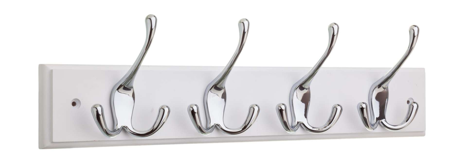 קולב ירדן לבן כרום, 4 ווים, מידות 40X7 ס"מ, עץ יציקת פלדה