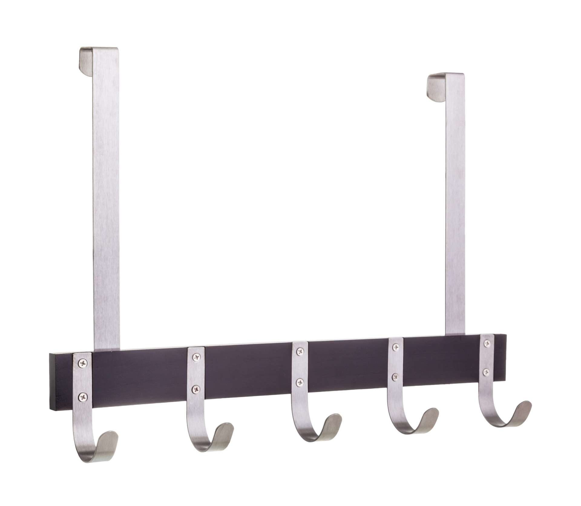 קולב עץ לדלת – 5 ווים, צבע חום, אורך 40 ס"מ