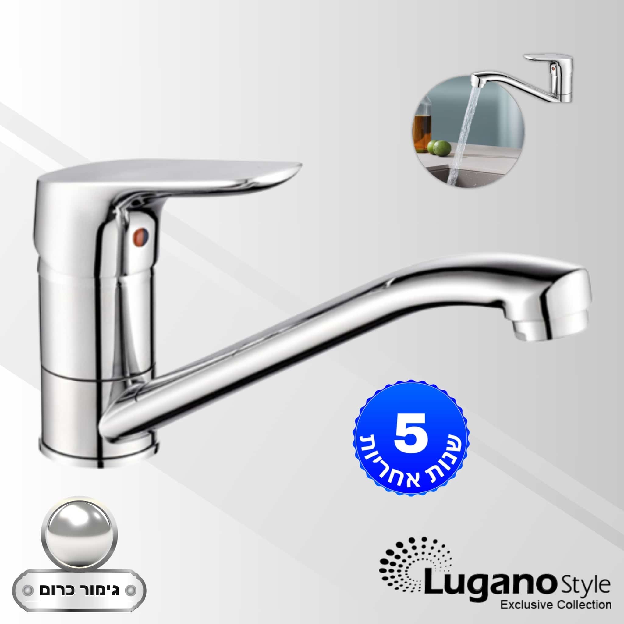 ברז "ערבוב" לכיור רחצה ניצב עם פיה בינונית – כרום. גימור: כרום. מידות: מרחק בין הבסיס לפייה: 20 ס"מ. גובה פיה: 20 ס"מ. גובה כללי: 24 ס"מ. קוטר מנגנון: 4 ס"מ.
