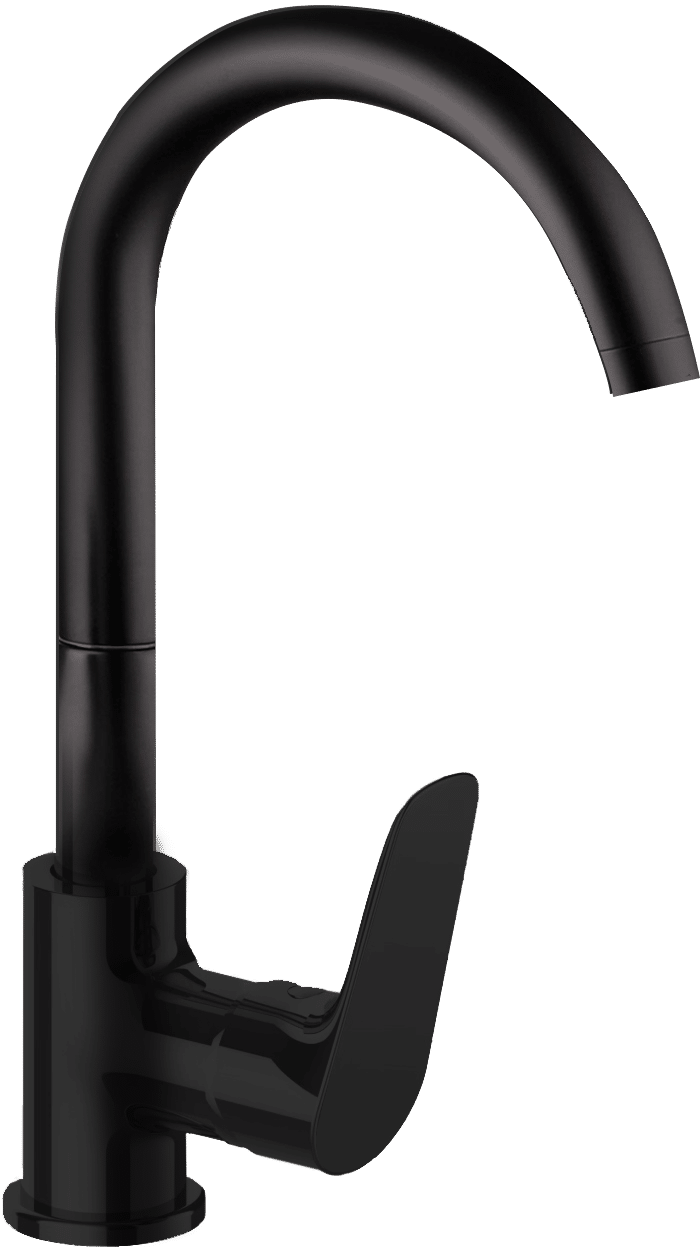 ברז ערבוב ניצב לכיור מטבח עם פייה קשתית גבוהה – שחור.