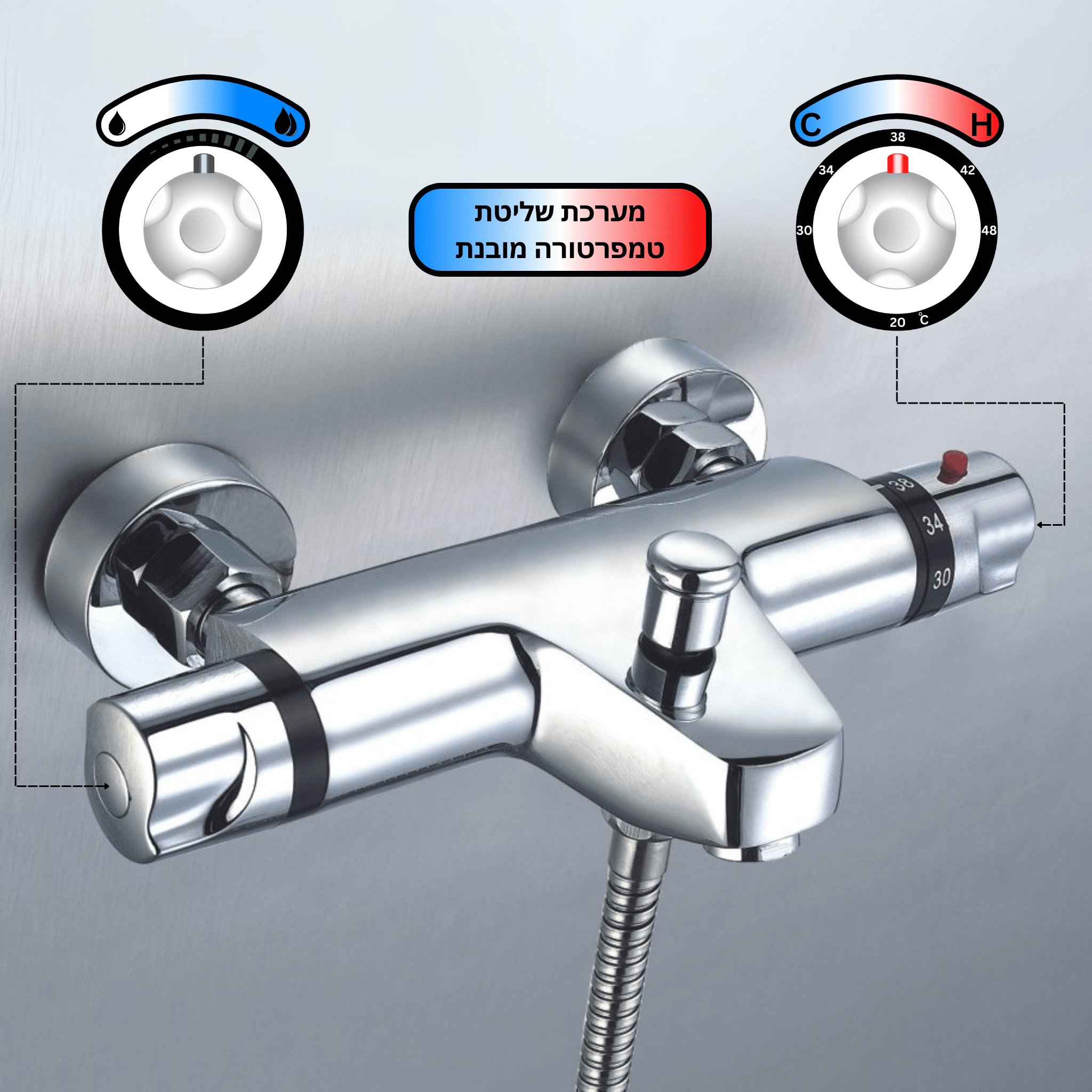 סוללה בעלת מנגנון המבודד חום וכך מונע כוויות, מנגנון השולט בחום המים (לחצן בטיחות), מנגנון המאפשר שליטה בעוצמת זרימת המים וכך חוסך במים.