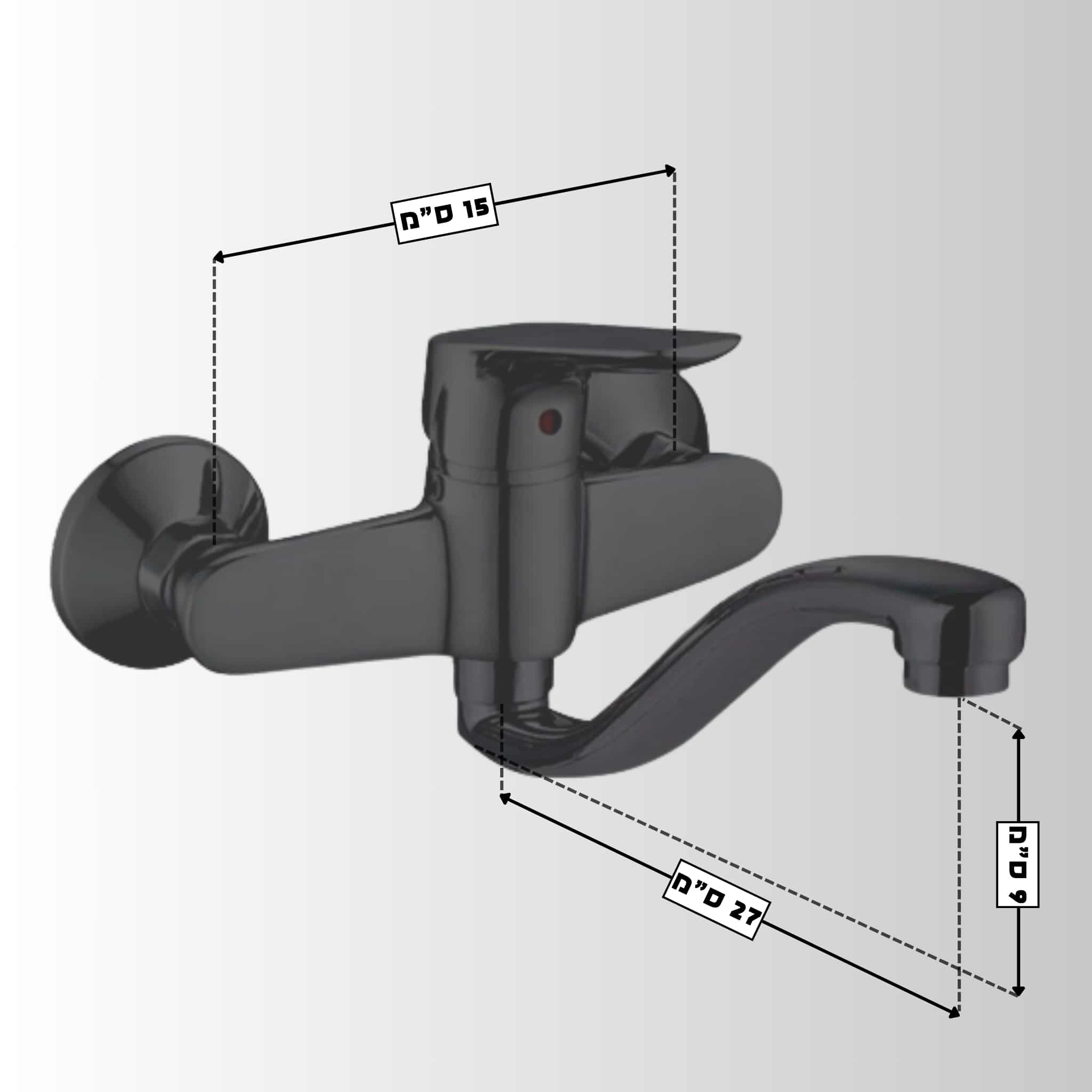 סוללת קיר עם פייה תחתונה קשתית בינונית – שחור. גימור: שחור. מידות: מרחק בין הבסיסים: 15 ס"מ. גובה פייה: 9 ס"מ. עומק פייה: 27 ס"מ.