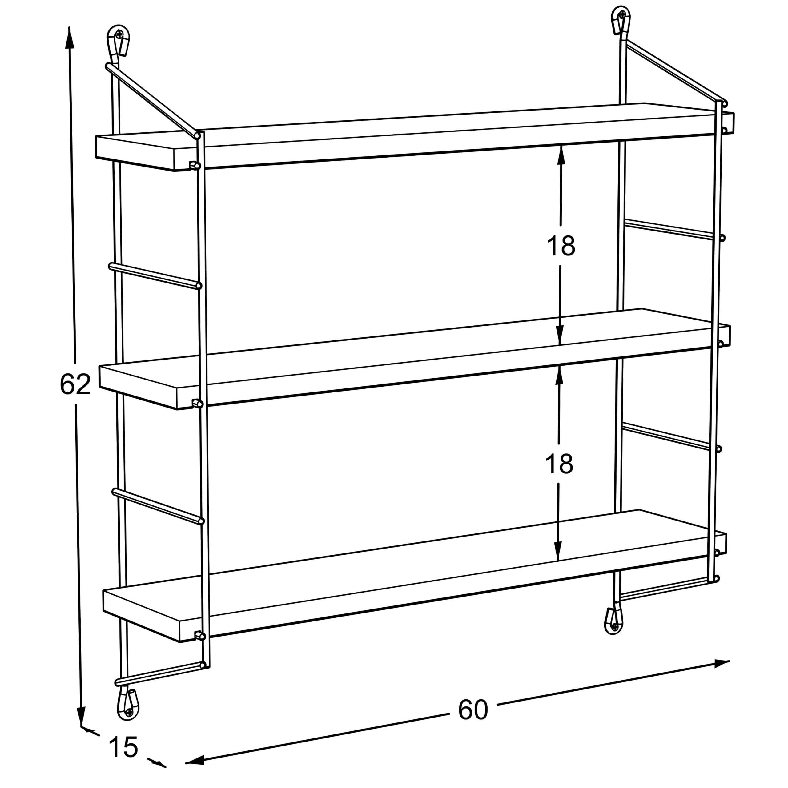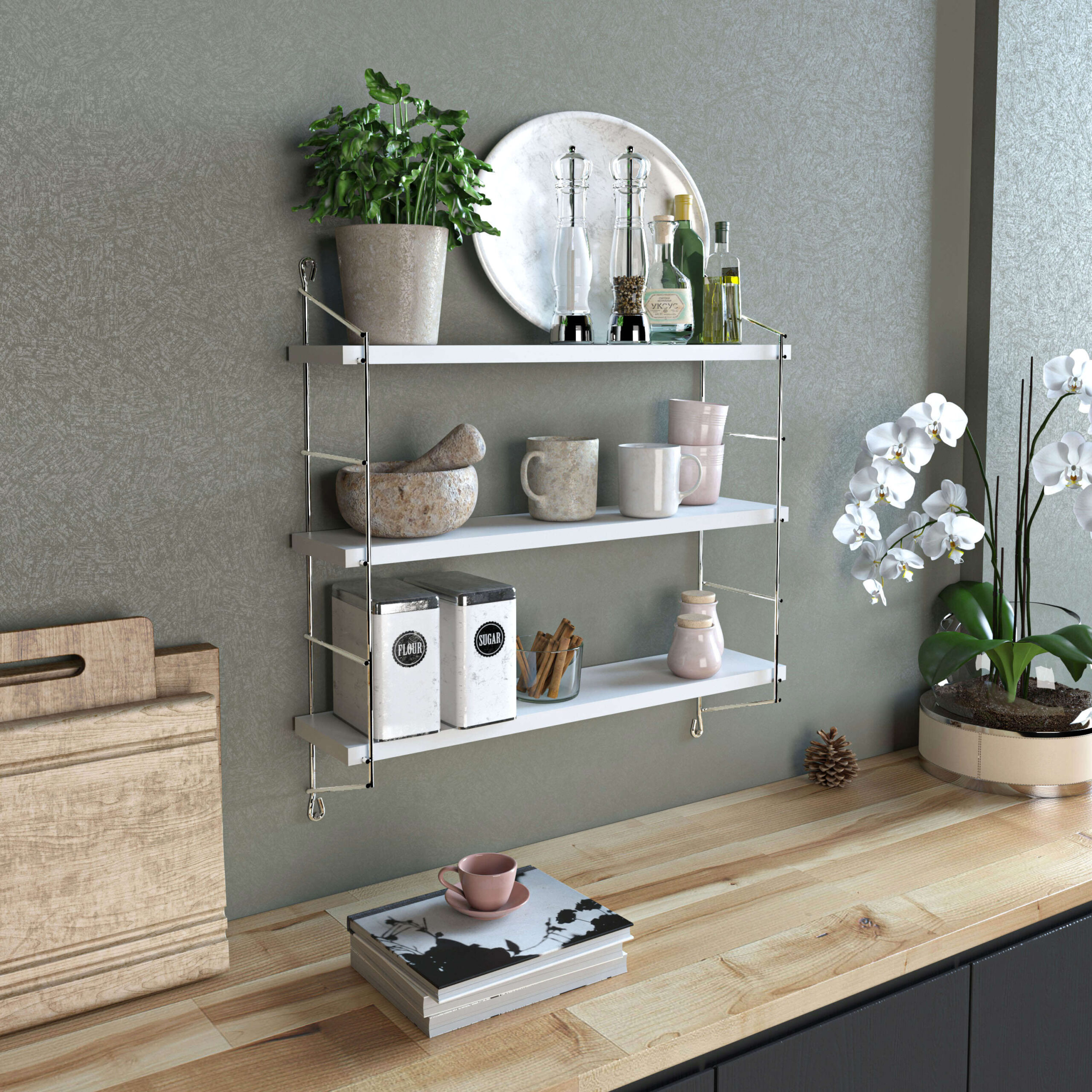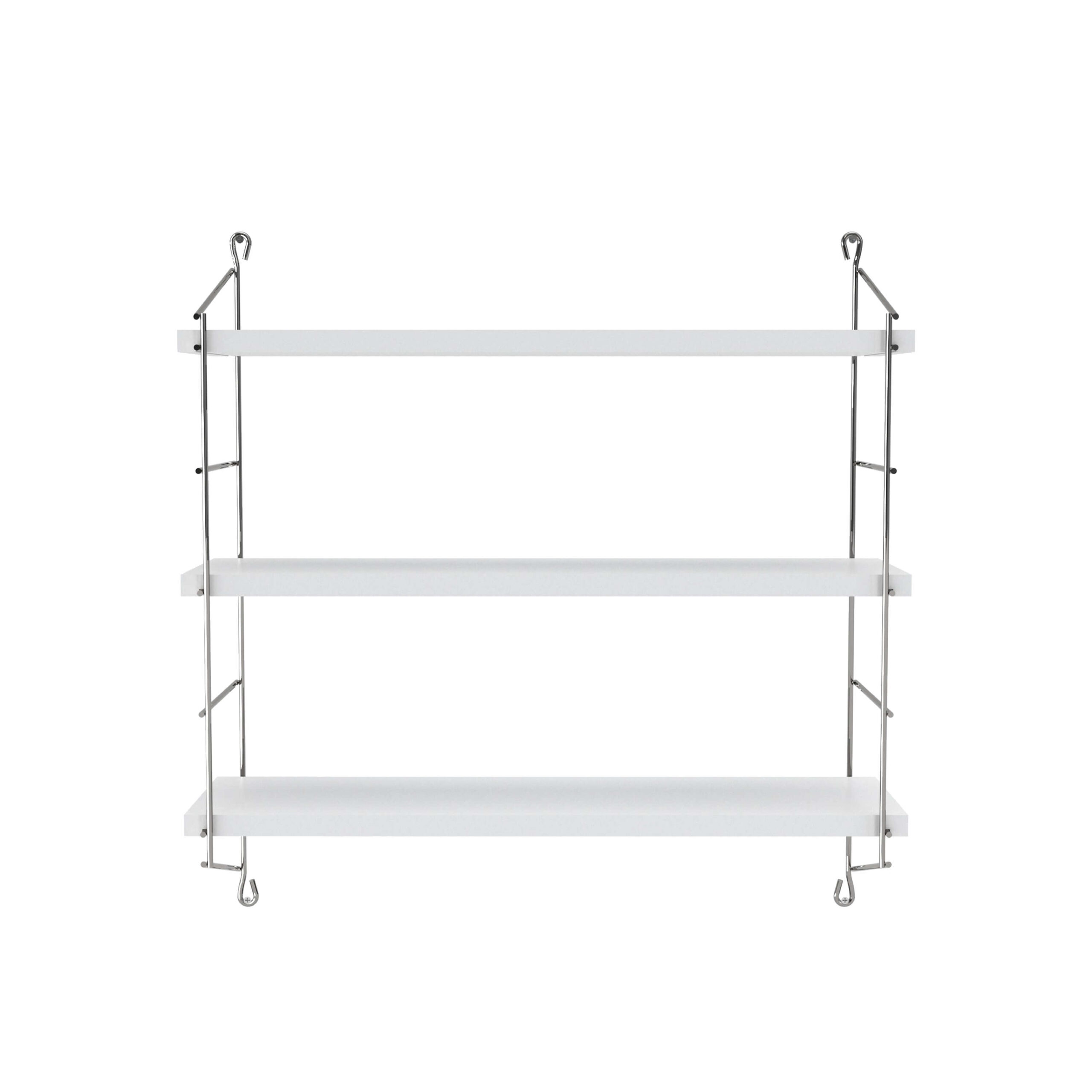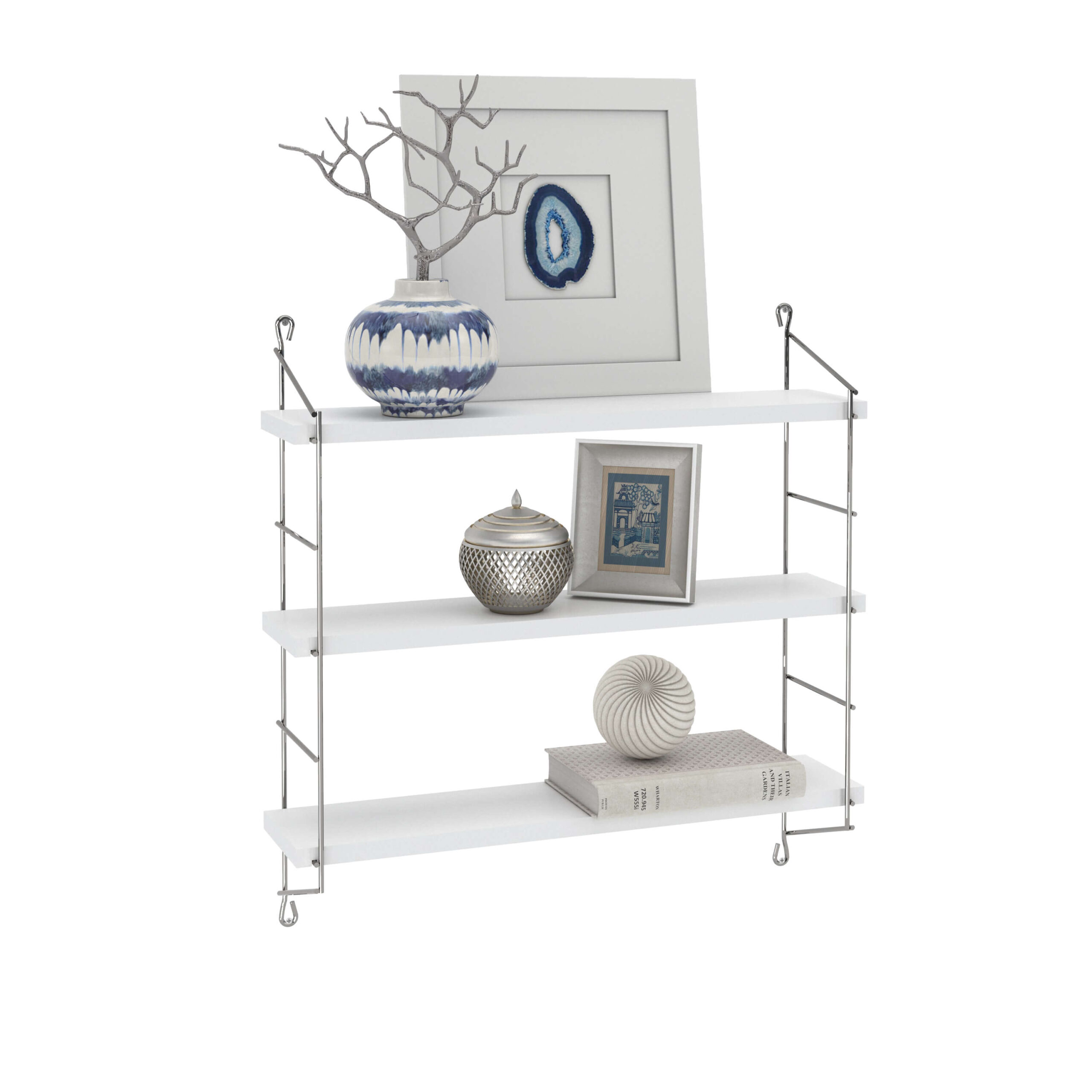 שלישיית מדפי עץ לבנים עם תליה מעוצבת מברזל צבע לבן