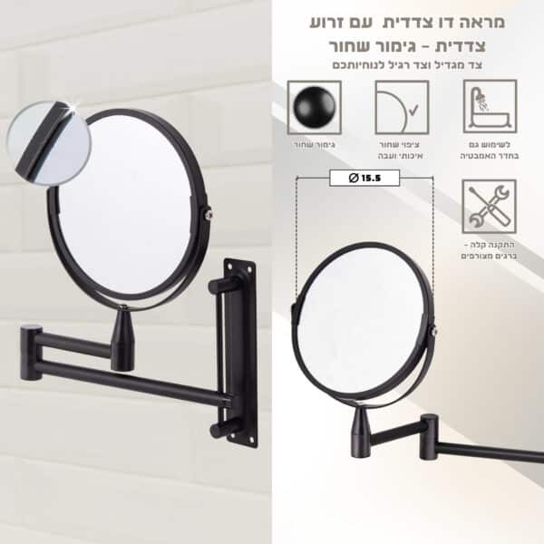 מראה דו צדדית עם זרוע צדדית – גימור שחור