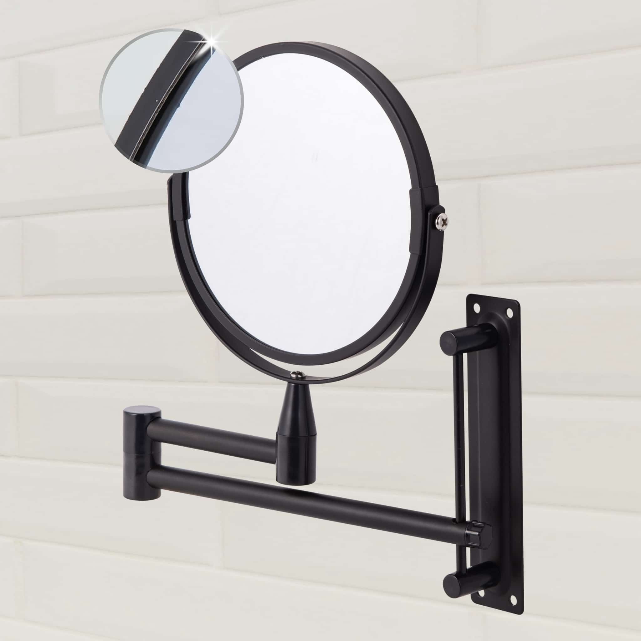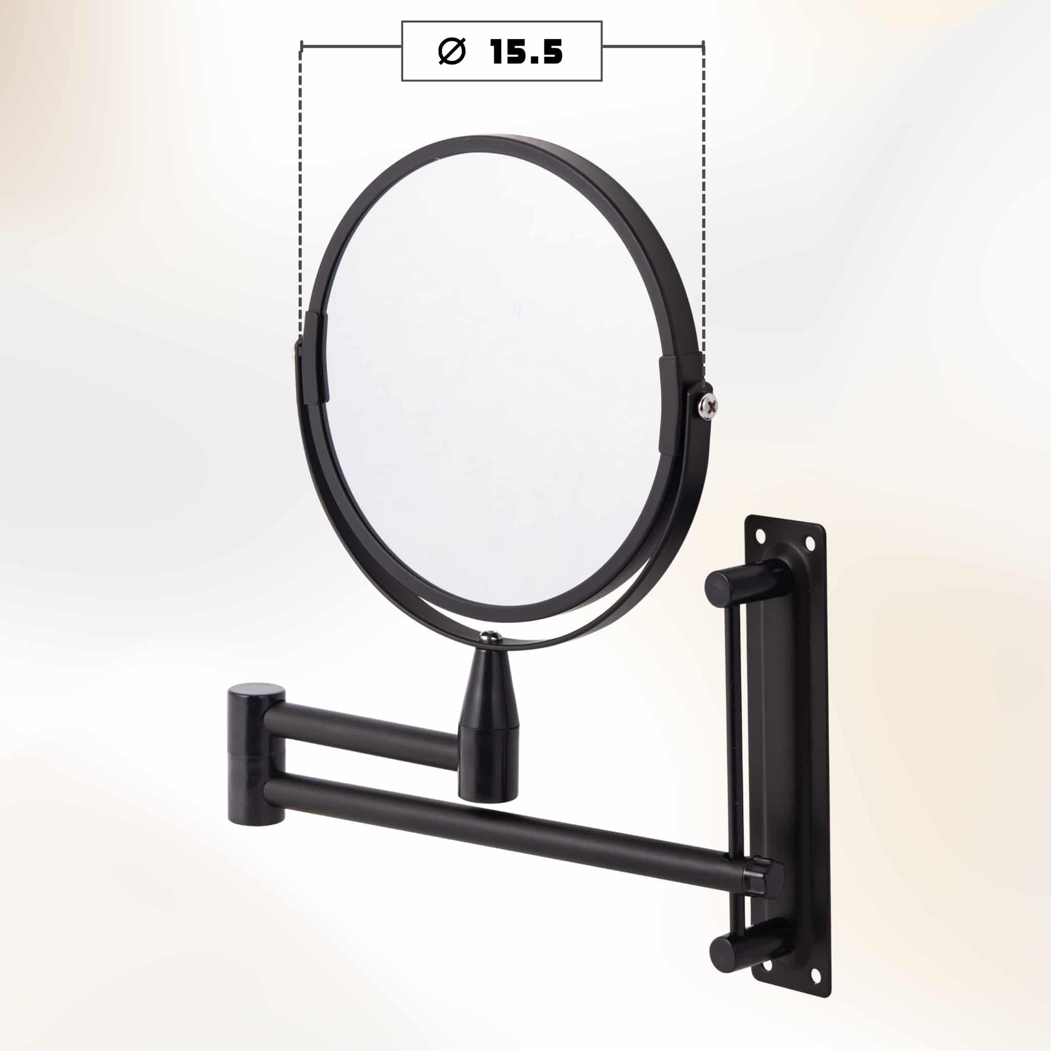 מראה דו צדדית עם זרוע צדדית – גימור שחור. צד מגדיל וצד רגיל לנוחיותכם. – לשימוש גם בחדר האמבטיה. – ציפוי שחור איכותי ועבה. – גימור שחור. – התקנה קלה – ברגים מצורפים. מידות: קוטר מראה: 15.5 ס"מ.