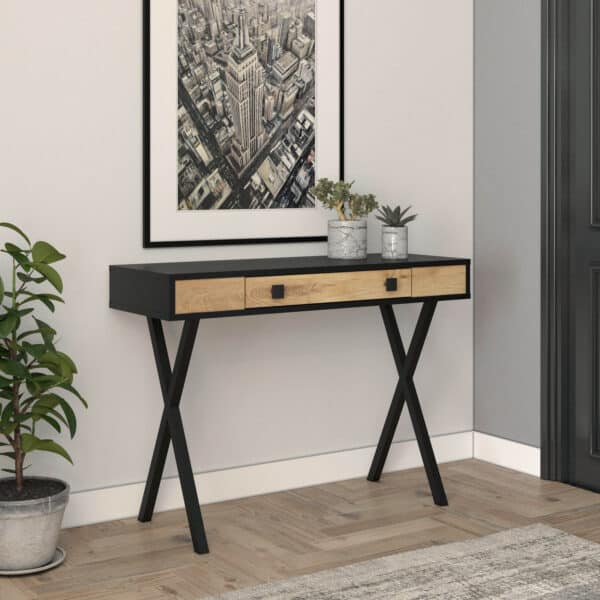 קונסולה בעיצוב מודרני לחלל הכניסה או המסדרון בבית דגם עדן שולחן כניסה צר ומעוצב לפתח הבית ולמסדרון. מזנון בעל מגירה רחבה וחלל אחסון עליון לפרטים שונים. יכול לשמש כשולחן איפור, שולחן צדדי בסלון והמסדרון או כוננית ושידה בחדר השינה. עיצוב...קרא עוד