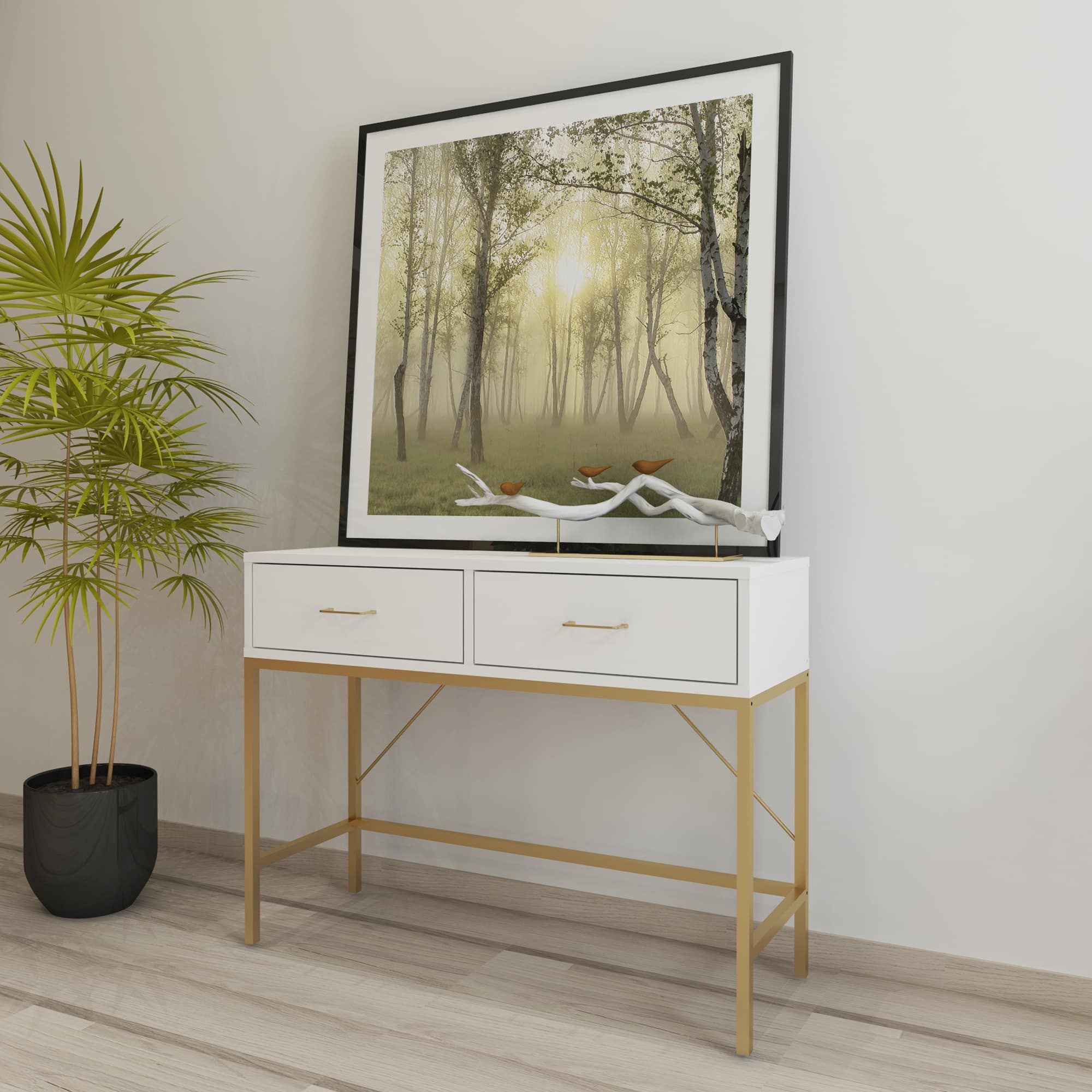 ​​קונסולה בעיצוב מודרני לחלל הכניסה או המסדרון בבית דגם ליהי זהב עם לבן