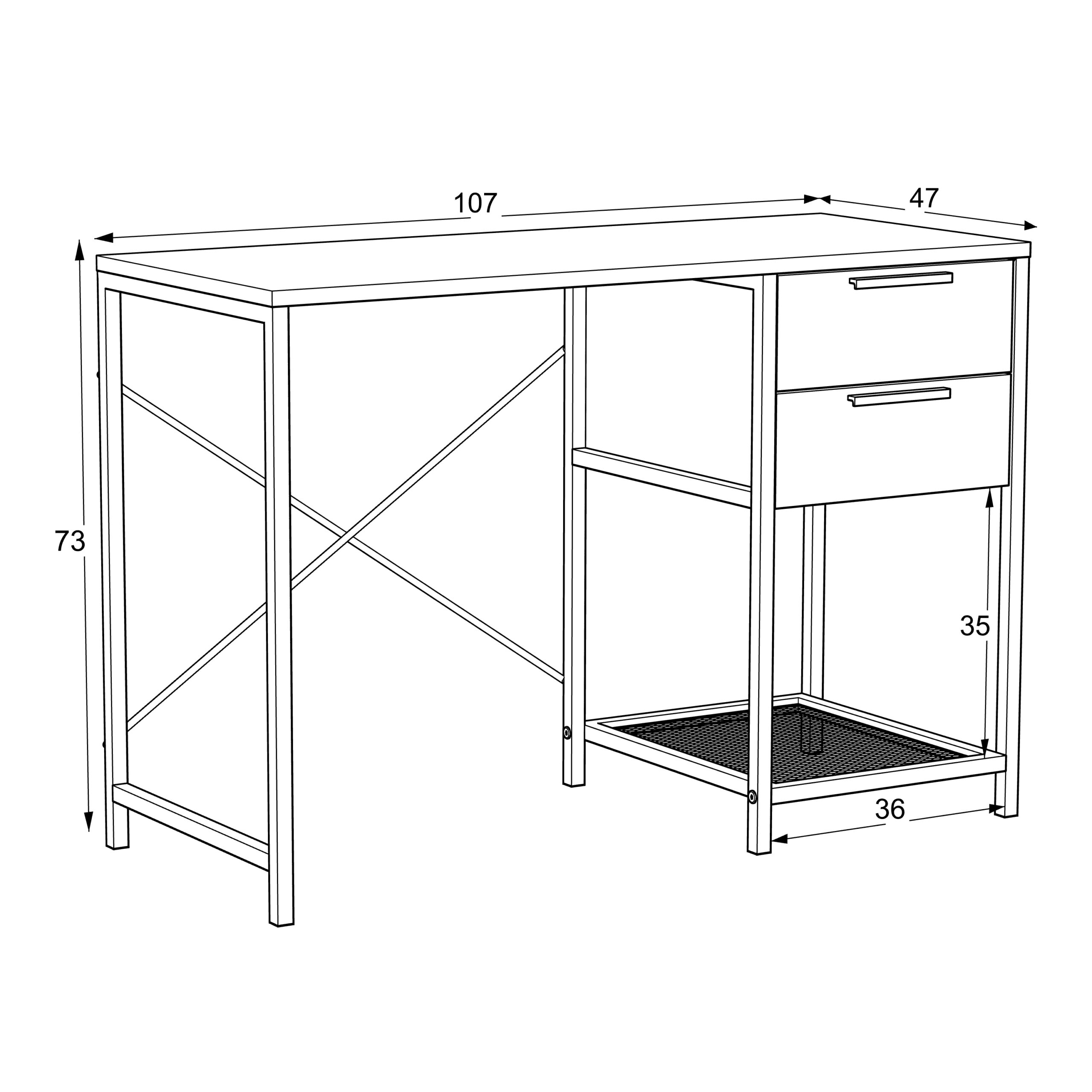 שולחן עבודה כתיבה עם 2 מגירות ומדף רשת תחתון שימושי, אידיאלי לתלמיד או סטודנט.